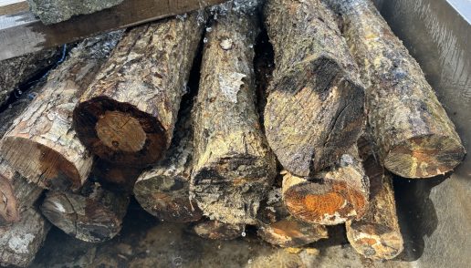1つめは椎茸の榾木を水槽で水に浸しました。