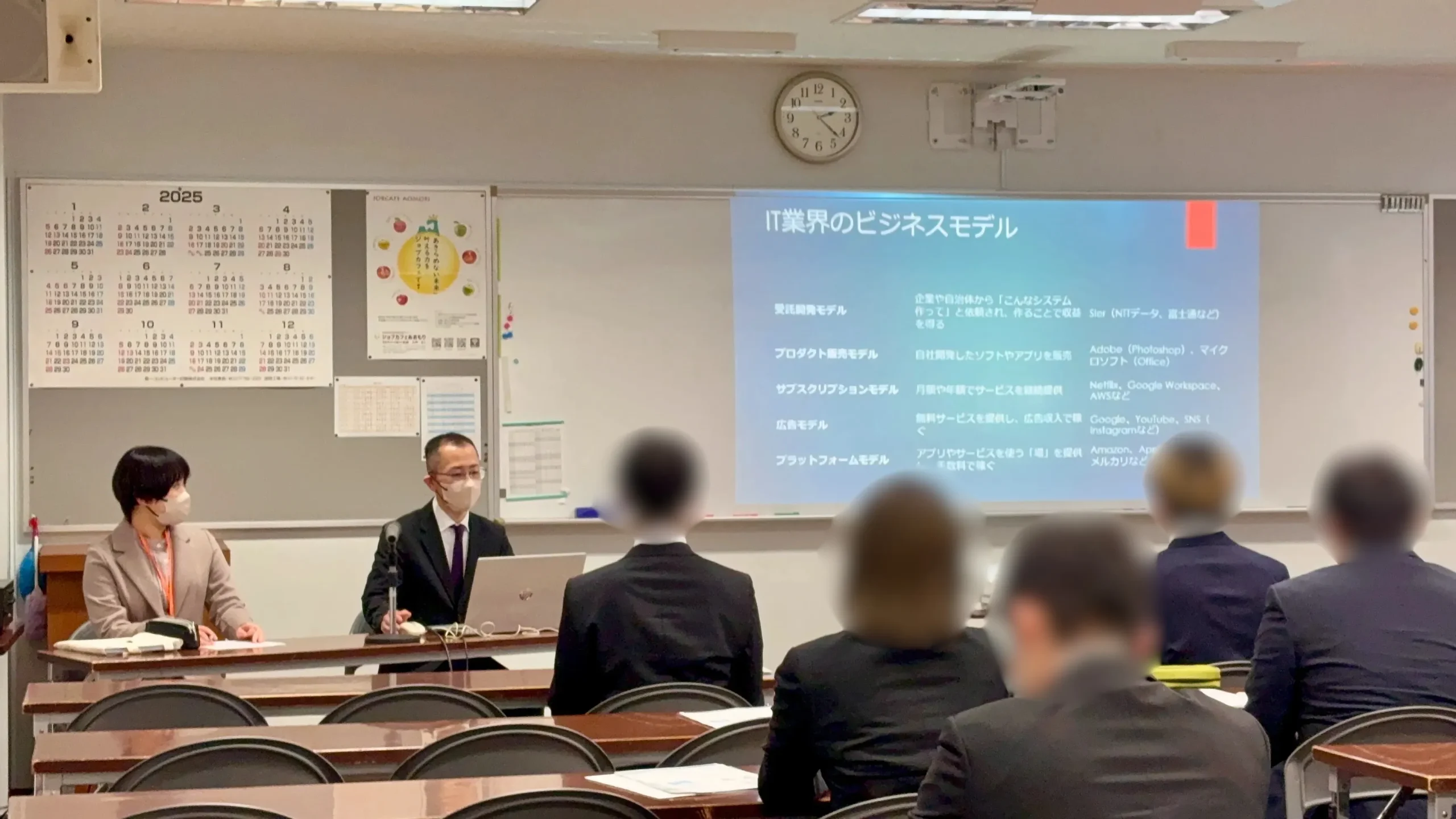 IT業界を目指す学生の皆さんに向けて、IT業界の仕組みや開発の魅力、そして”地元でITの仕事をする”という選択肢についてお話ししました。