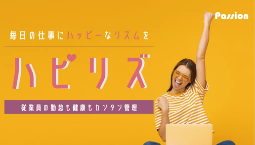 パッション パッションNEWS 【ハピリズ】毎日の仕事にハッピーなリズムを。 2022.03.24 「最近、テレワークでみんなの顔見てないなあ…」 従業員の健康面も勤怠も管理するのは難しい…。 そのお悩みハピリズ…