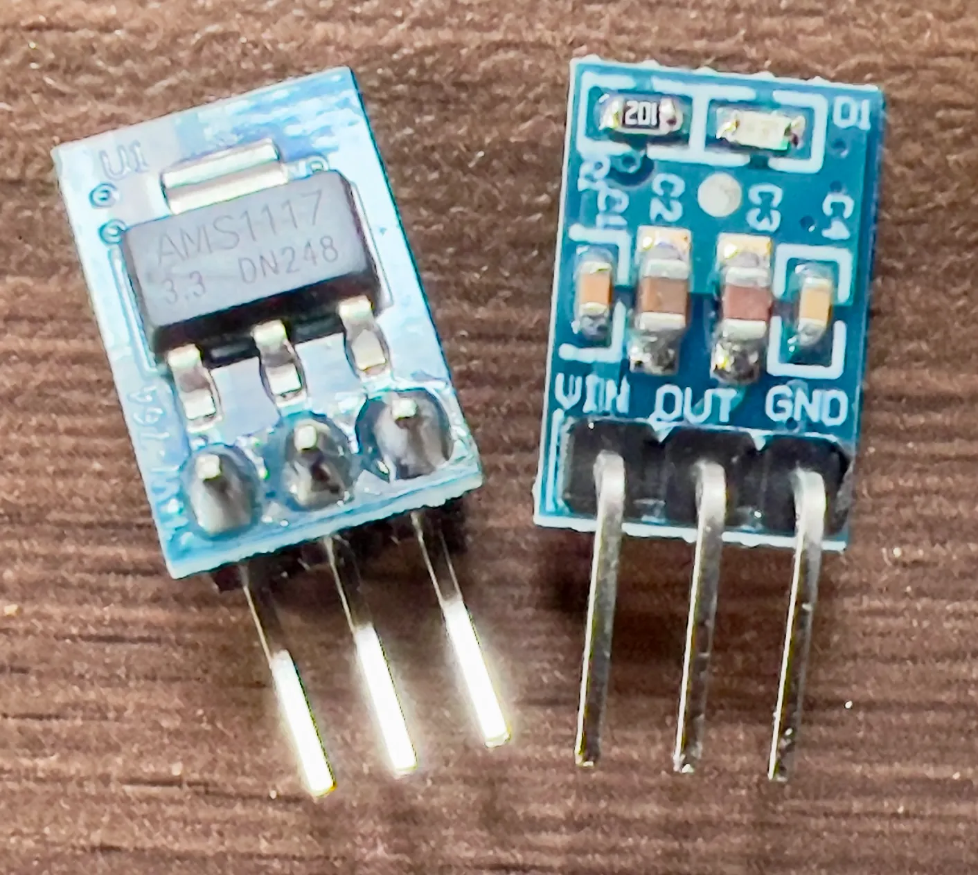 FT232H にも 3.3V 出力は備わっていますが、電流容量が小さいため、安定動作のために 5V – 3.3V の降圧レギュレーターを使用しています。