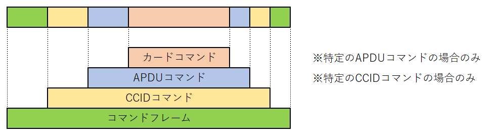 RC-S660/S でサポートしている CCID コマンドでは、CCIDコマンド中に RC-S660/S を制御するためのAPDUコマンドを内包するものがあります。